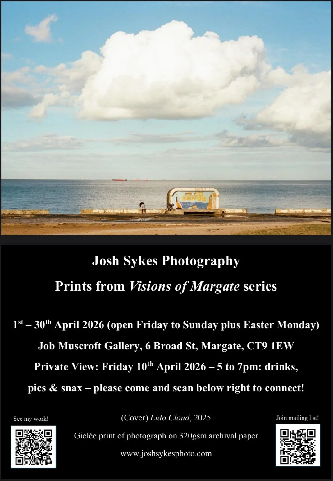 I will be exhibiting and selling archival-quality Giclée prints from my photographic series “Visions of Margate”, a sort of visual diary of my time exploring and discovering my new seaside home since I moved here in 2025. Like so many other nature-deprived and soul-crushed ex-Londoners who move here, I’m inspired by Margate’s sense of space, its open horizons and spirit of possiblity. I hope to convey that energy in my photos.